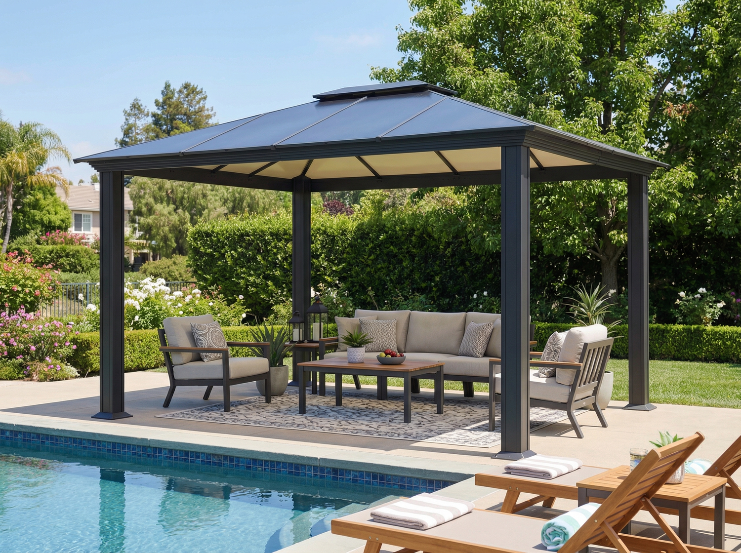 Transform your space with a gazebo that delivers style and protection with its hard-top roof and heavy-gauge aluminum construction. From intimate dining to spacious entertainment areas, our gazebos create the perfect space for outdoor gatherings in any season.