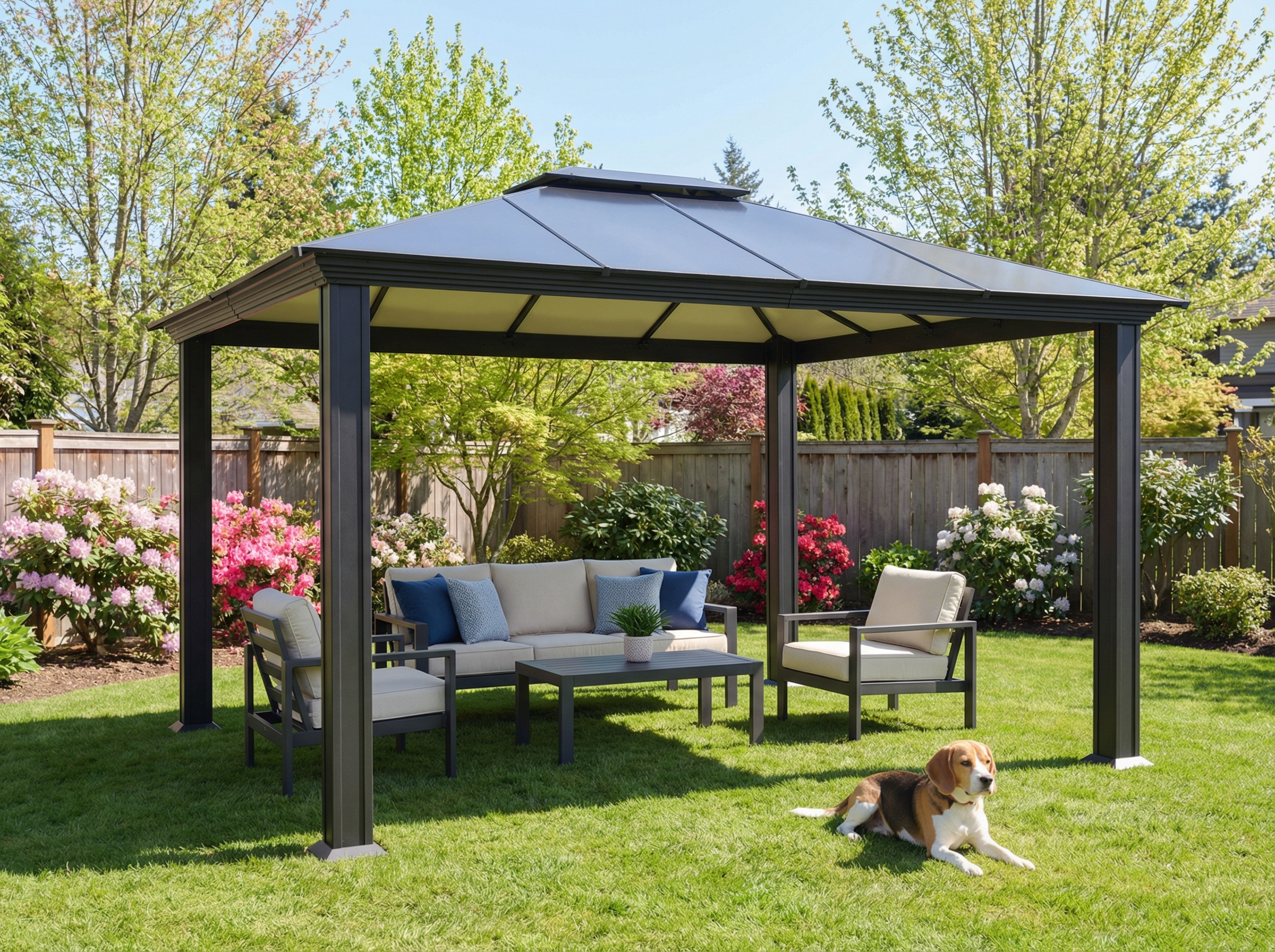 Our top gazebos range from intimate 11'x11' models to spacious 12'x20' options, providing ample space for various uses. Consider your patio dimensions, intended use (outdoor dining, hot tub coverage, or general entertainment), and what size furniture you plan to decorate with.