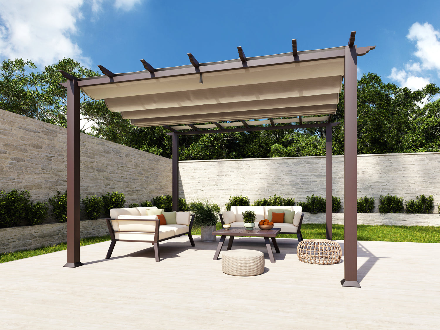 A soft top pergola is a great way to enjoy your outdoor living space on your terms. With a retractable canopy overhead and room to style below, these pergolas turn patios into places of rest, gathering, and inspiration.