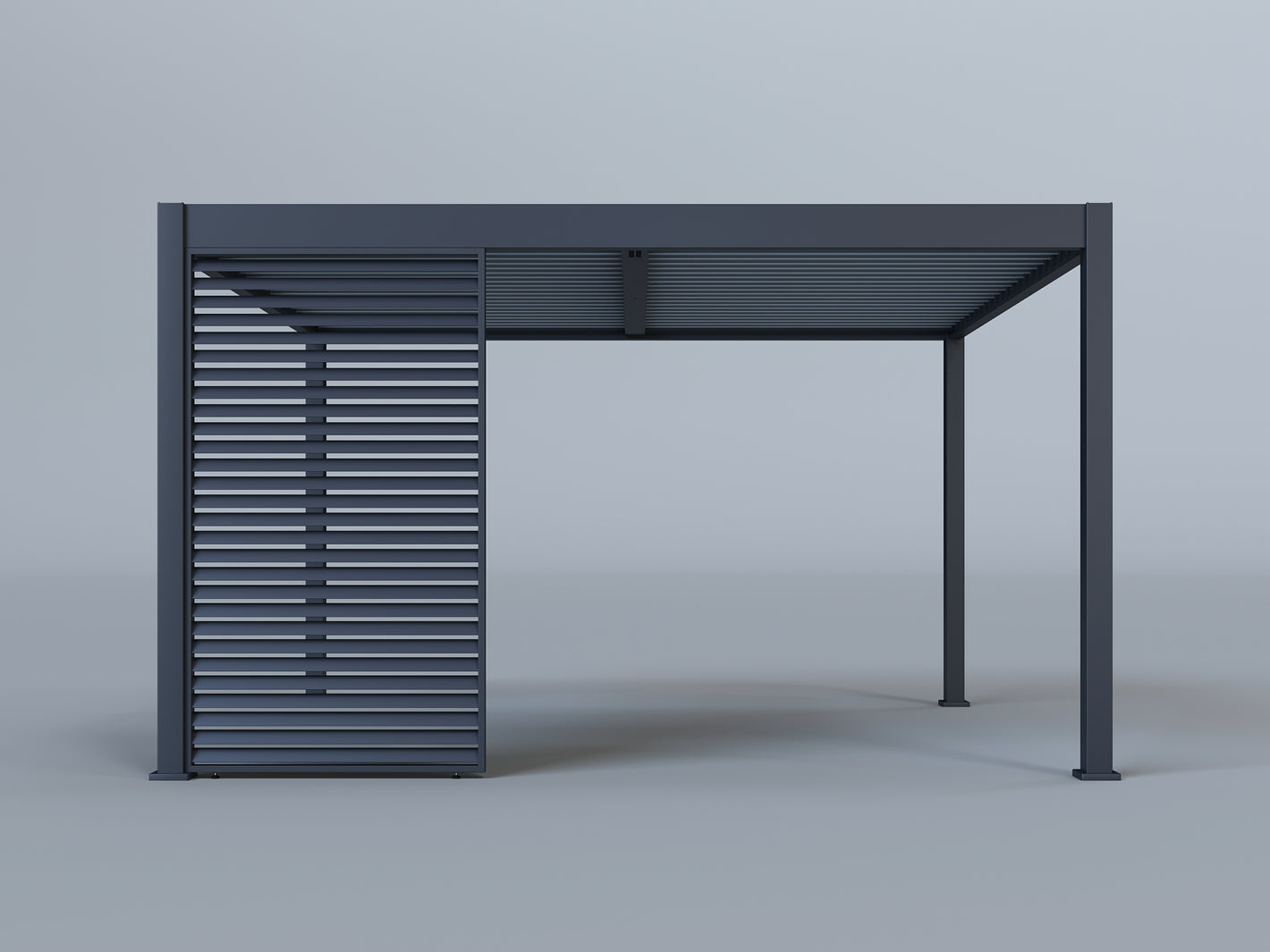 The privacy panels are compatible with the Suprema Louvered Pergola, Lugano Louvered Pergola and Grand Tuscan Louvered Pergola.