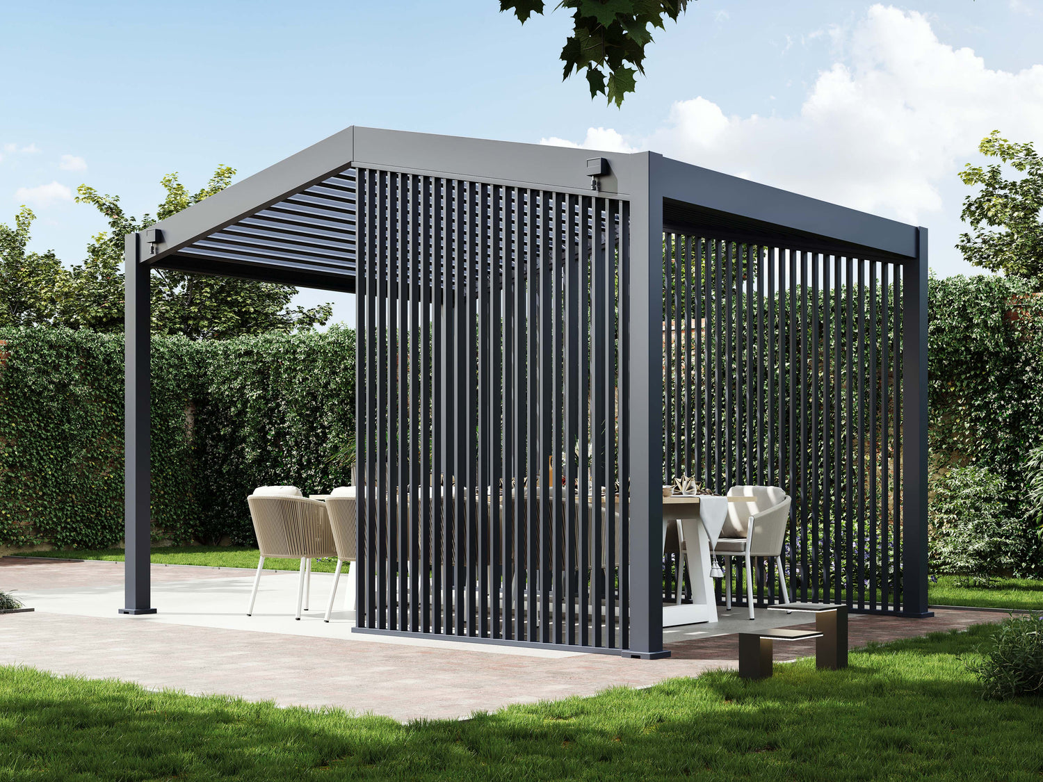 Add visual interest while increasing privacy and wind protection with Fixed Vertical Panels, designed specifically for the Icon Louvered Pergola.